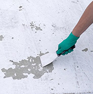 If the coating is failing or peeling, use a paint scraper tool or sand down to a sound concrete surface.