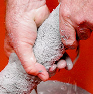 Repeat washing and rinsing until the water runs clear.