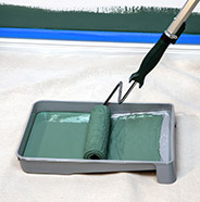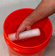 Pre-wet roller to activate and prime fabric for loading paint. For water-based coatings, pre-wet with water. For oil-based coatings, pre-wet with manufacturer’s recommended solvent.