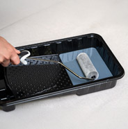 Dip the roller into the paint, roll it over the ribbed section of the tray, and repeat for 10 to 15 seconds until the roller is fully saturated.
